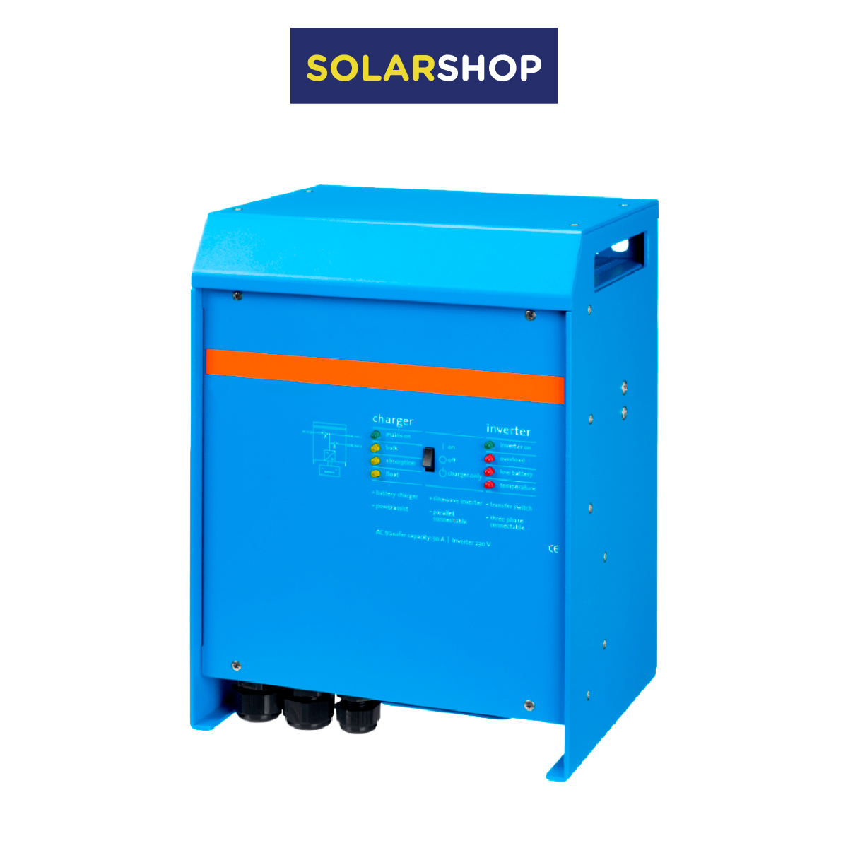 El inversor 12V 3000VA tiene una potencia de salida nominal de 3000VA y pico de potencia de salida de 6000W para soportar los transitorios de arranque de las cargas más exigentes. Para utilización con baterías de 12 voltios de cualquier tipo, su elevada potencia hace de este inversor un equipo profesional para utilización en la mayoría de aplicaciones, instalaciones en viviendas habituales, casetas de campo, caravanas, barcos, industria o cualquier aplicación que requiera elevadas exigencias. Incorpora todas las protecciones necesarias para su fácil utilización.
